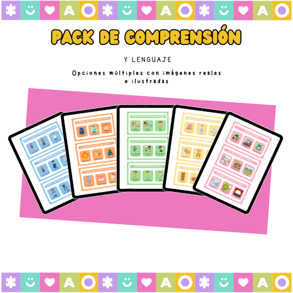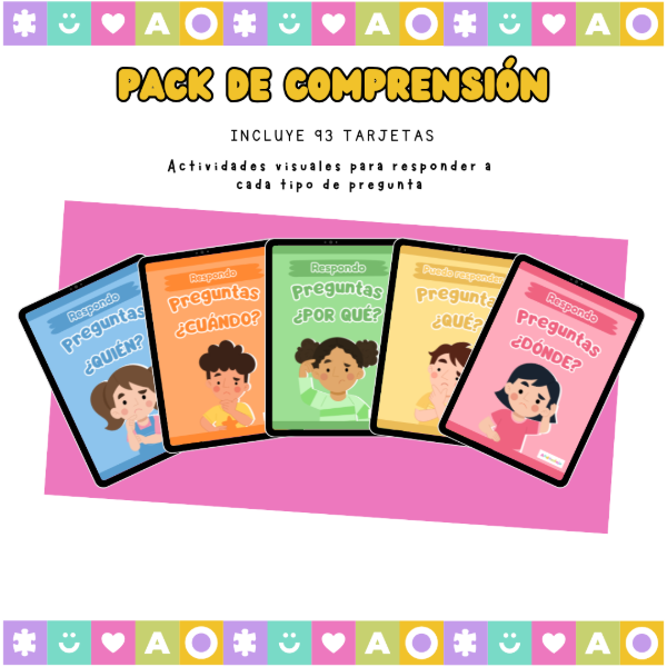 Este pack contiene 5 propuestas visuales e interactivas que abordan las preguntas básicas ¿quién?, ¿qué?, ¿por qué?, ¿cuándo? y ¿dónde?, fundamentales para el desarrollo del lenguaje comprensivo y expresivo. Cada hoja presenta preguntas con imágenes y opciones visuales, pensadas para favorecer la comprensión, la anticipación de respuestas y el reconocimiento de conceptos cotidianos.
